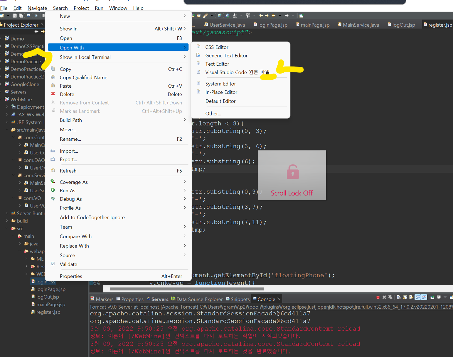 그러면 VSC가 뜰텐데 VSC에서 작업하고 Ctrl + S를 눌러서 저장하면 이클립스에서도 저장되는 것을 볼 수 있다!