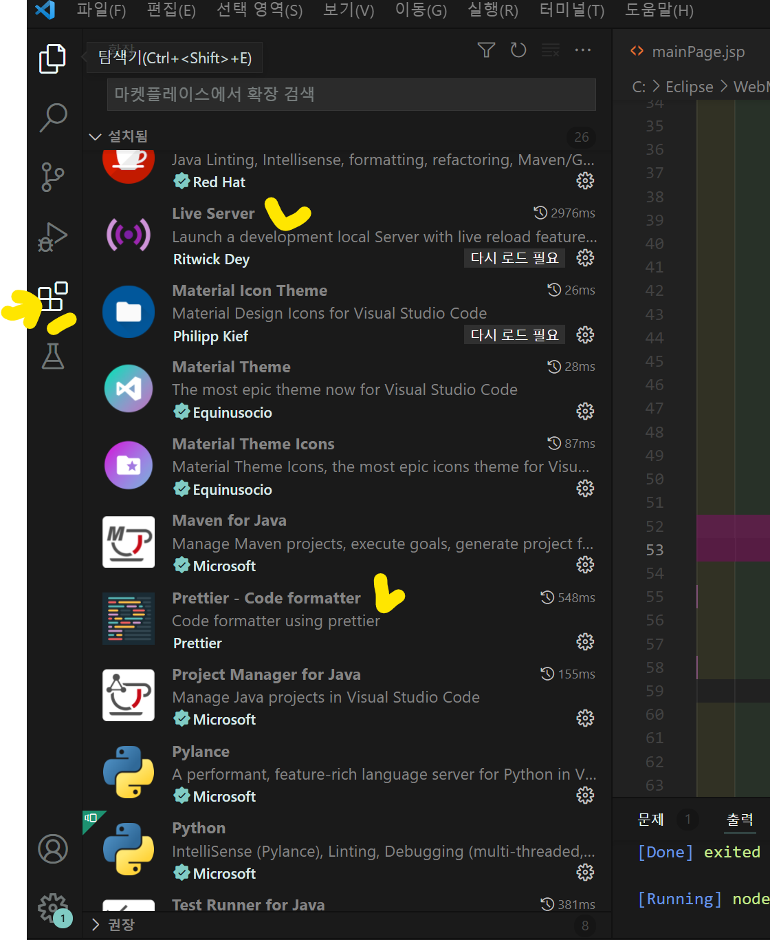 2. VSC에 extention을 다운로드 (권장)